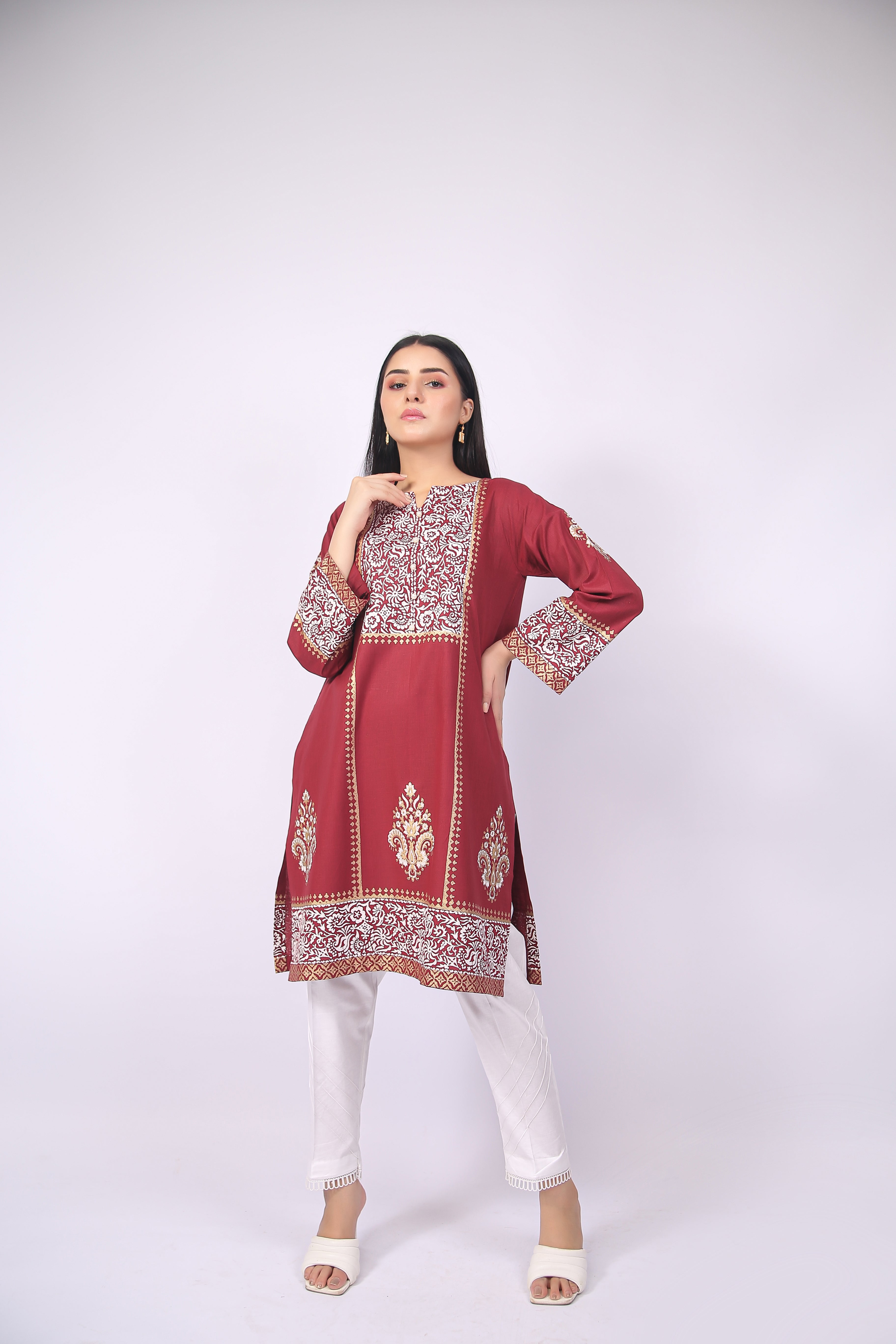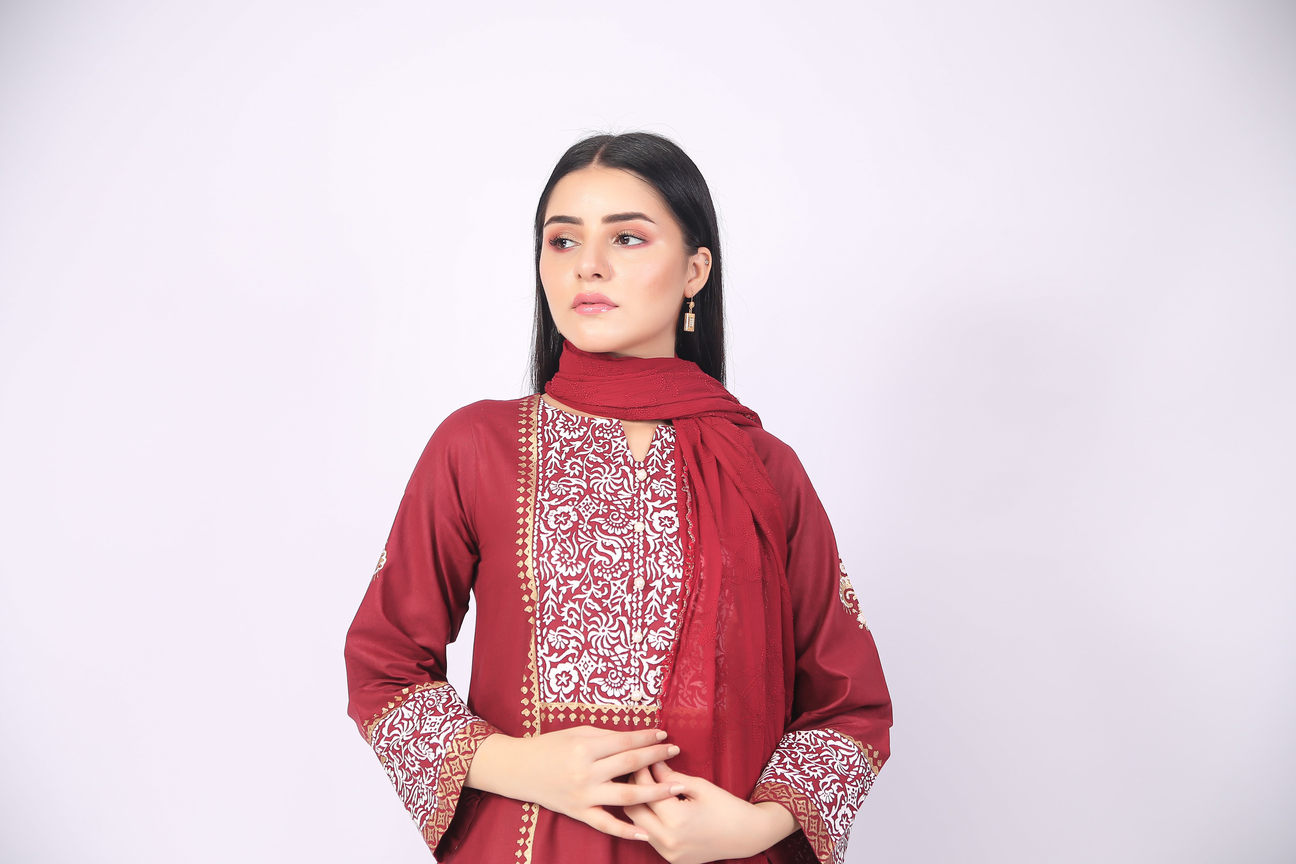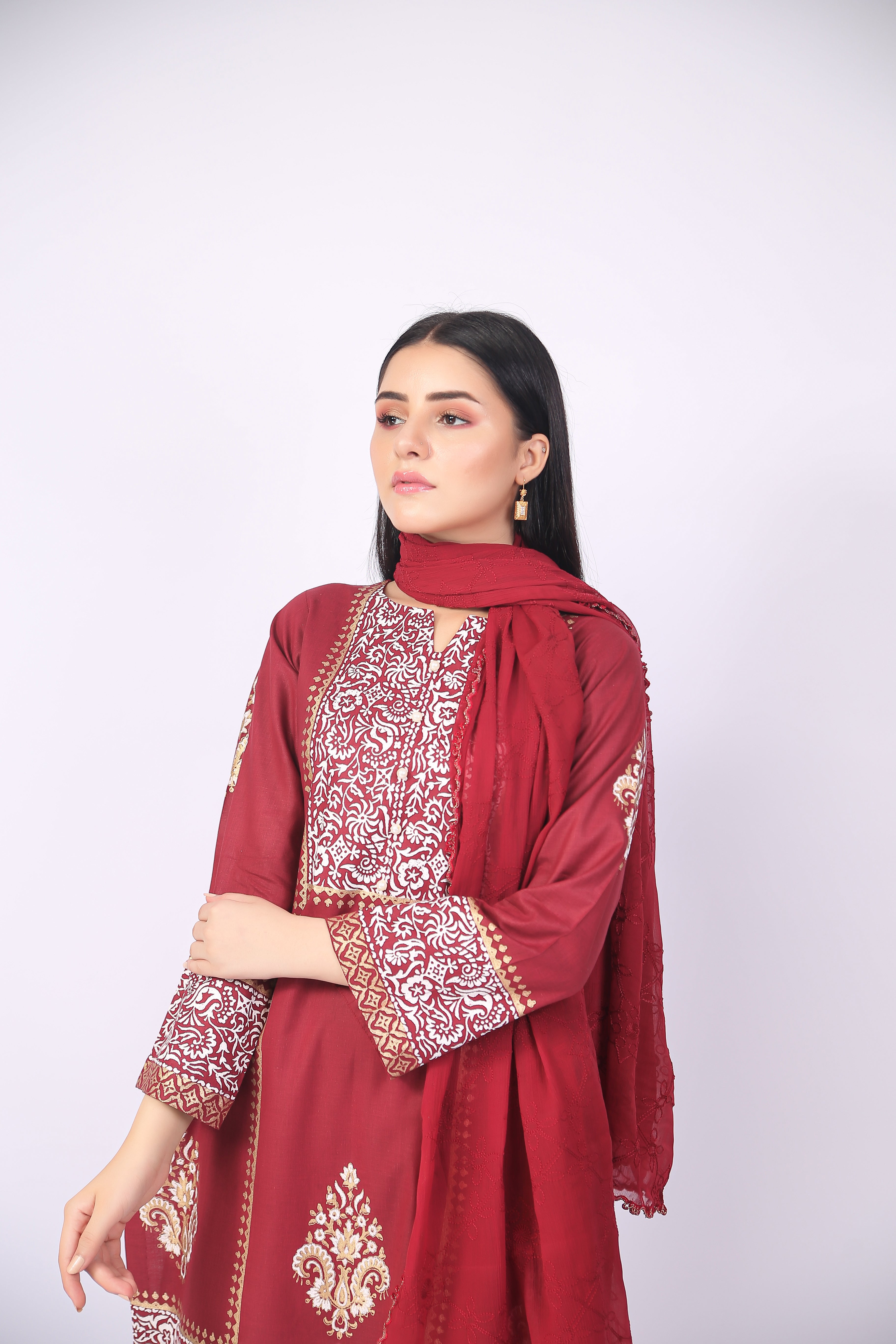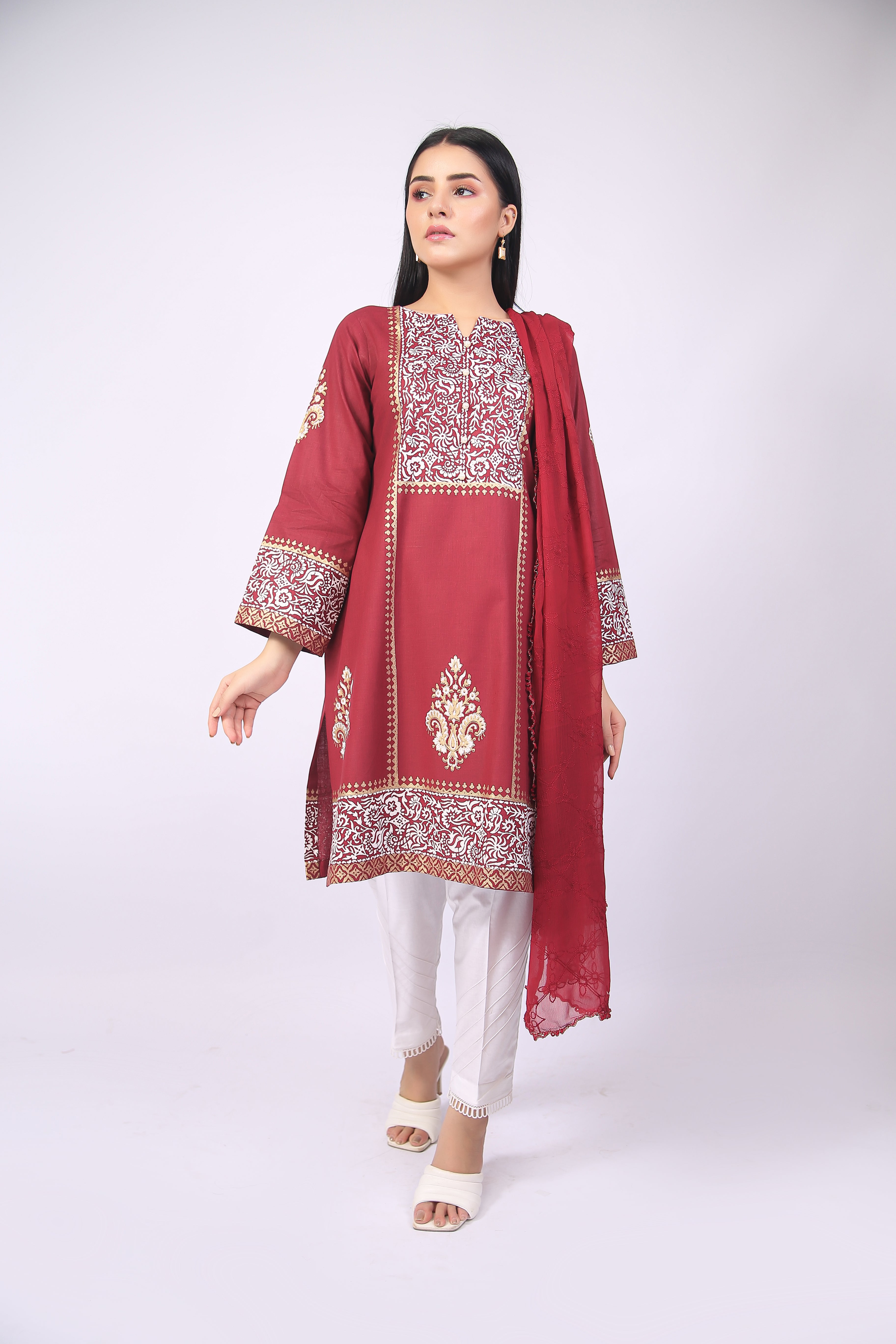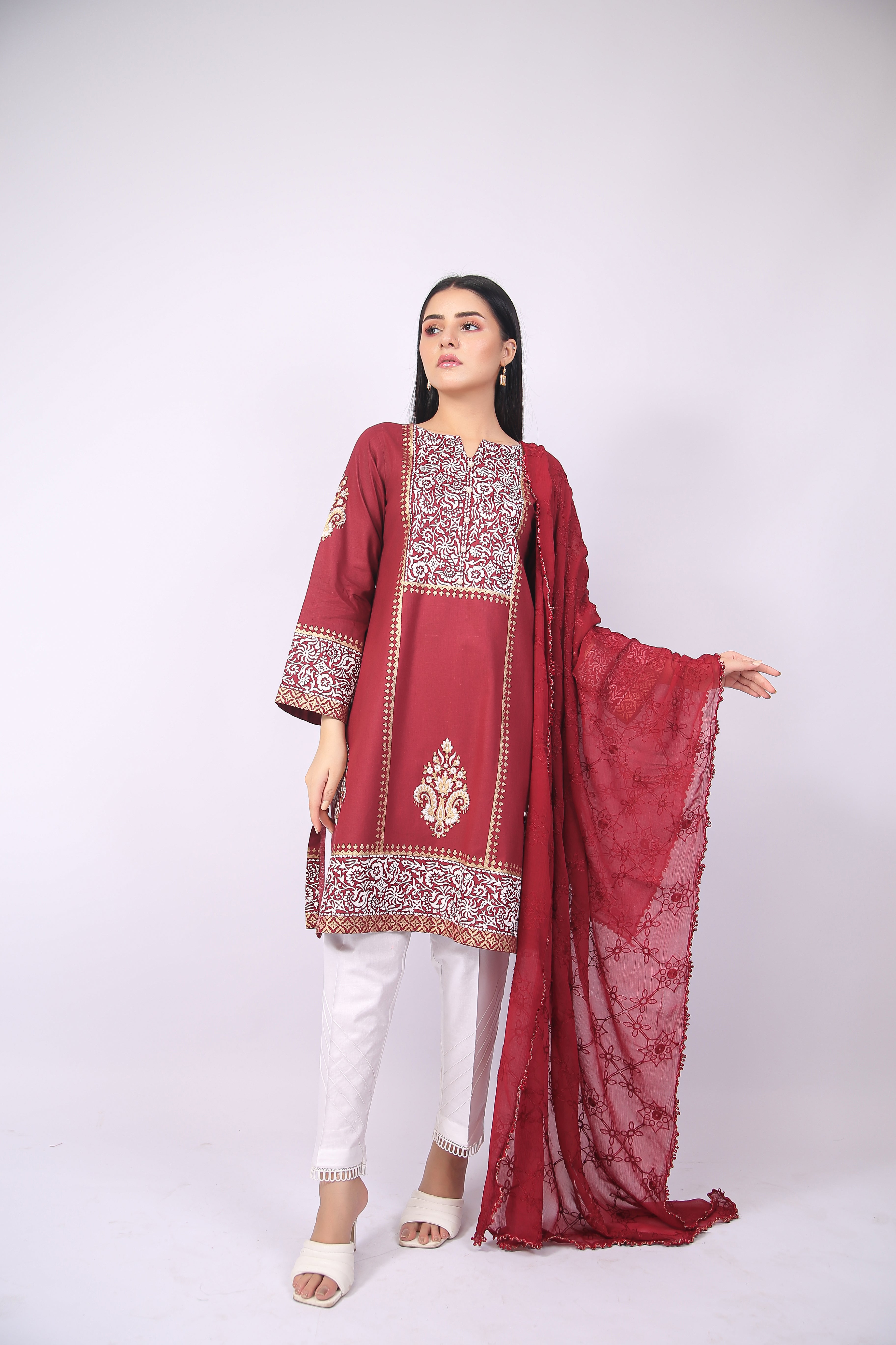2.50 Yards Dyed Embroidered Crinkle Chiffon Dupatta