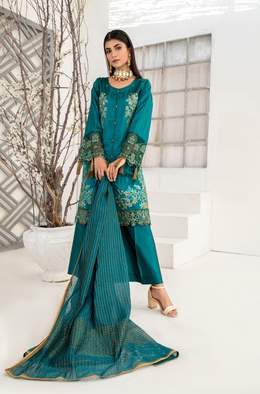 0.90 Yards Embroidered Organza Lace Back Daman