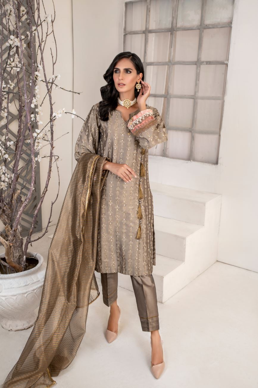 3.00 Yards Embroidered Front, Back & Sleeves Jaal Embroidery