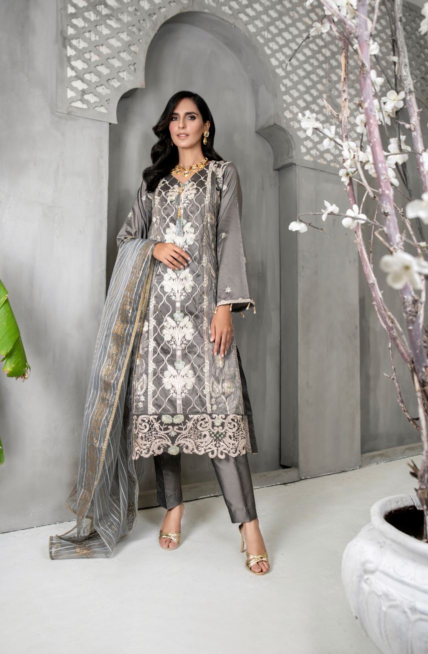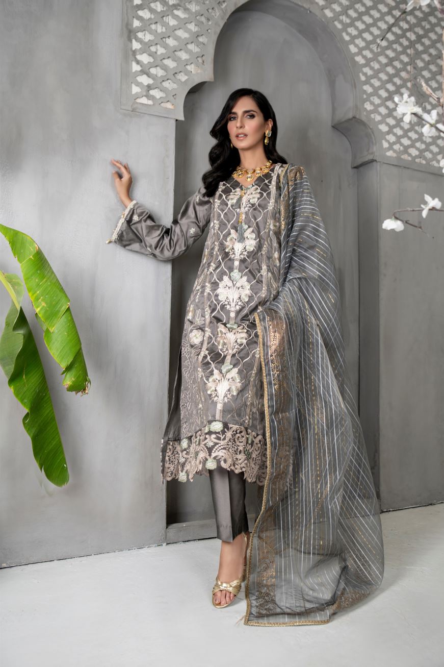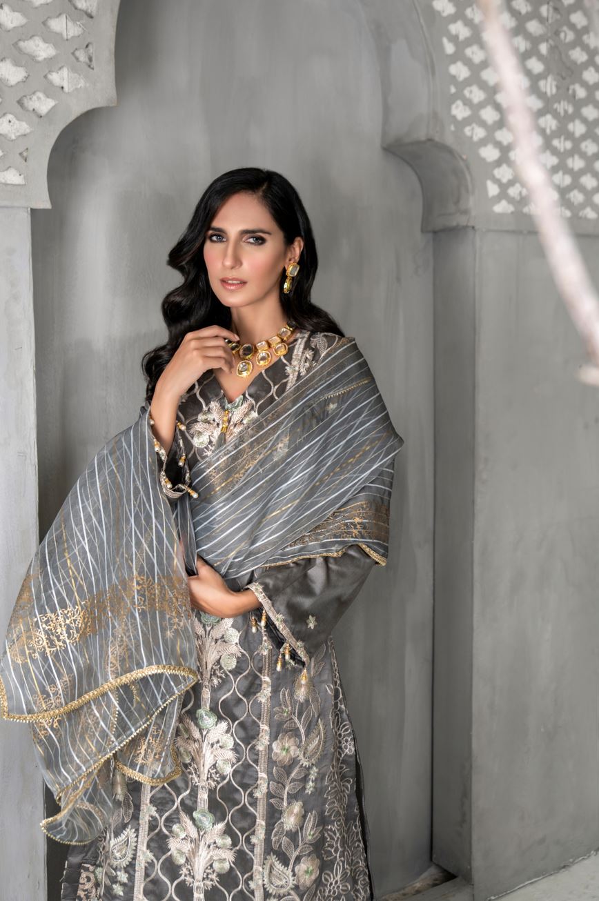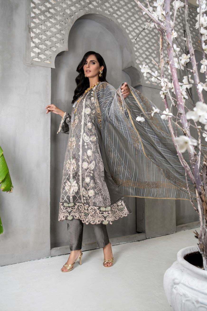 1.80 Yards Embroidered Organza Lace Front & Back Daman