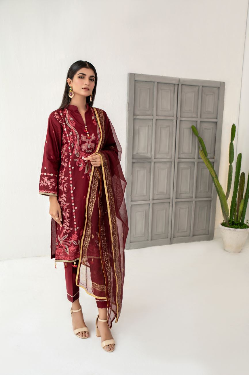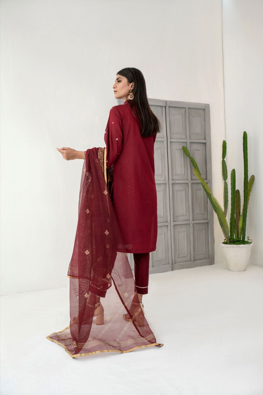 2.50 Yards Handmade Khaddi Cotton with Foil Print Dupatta