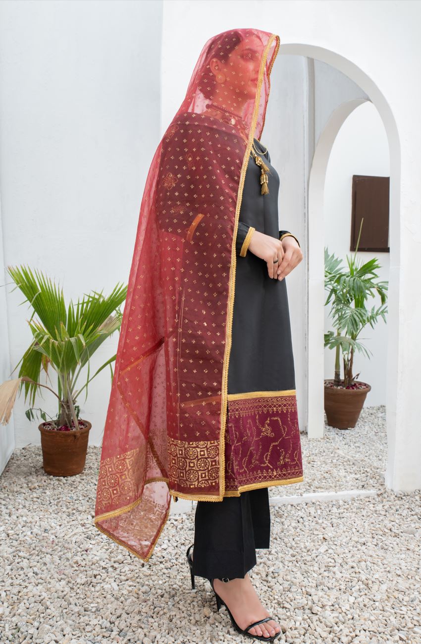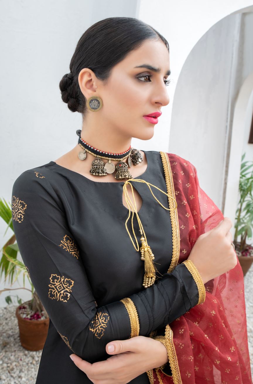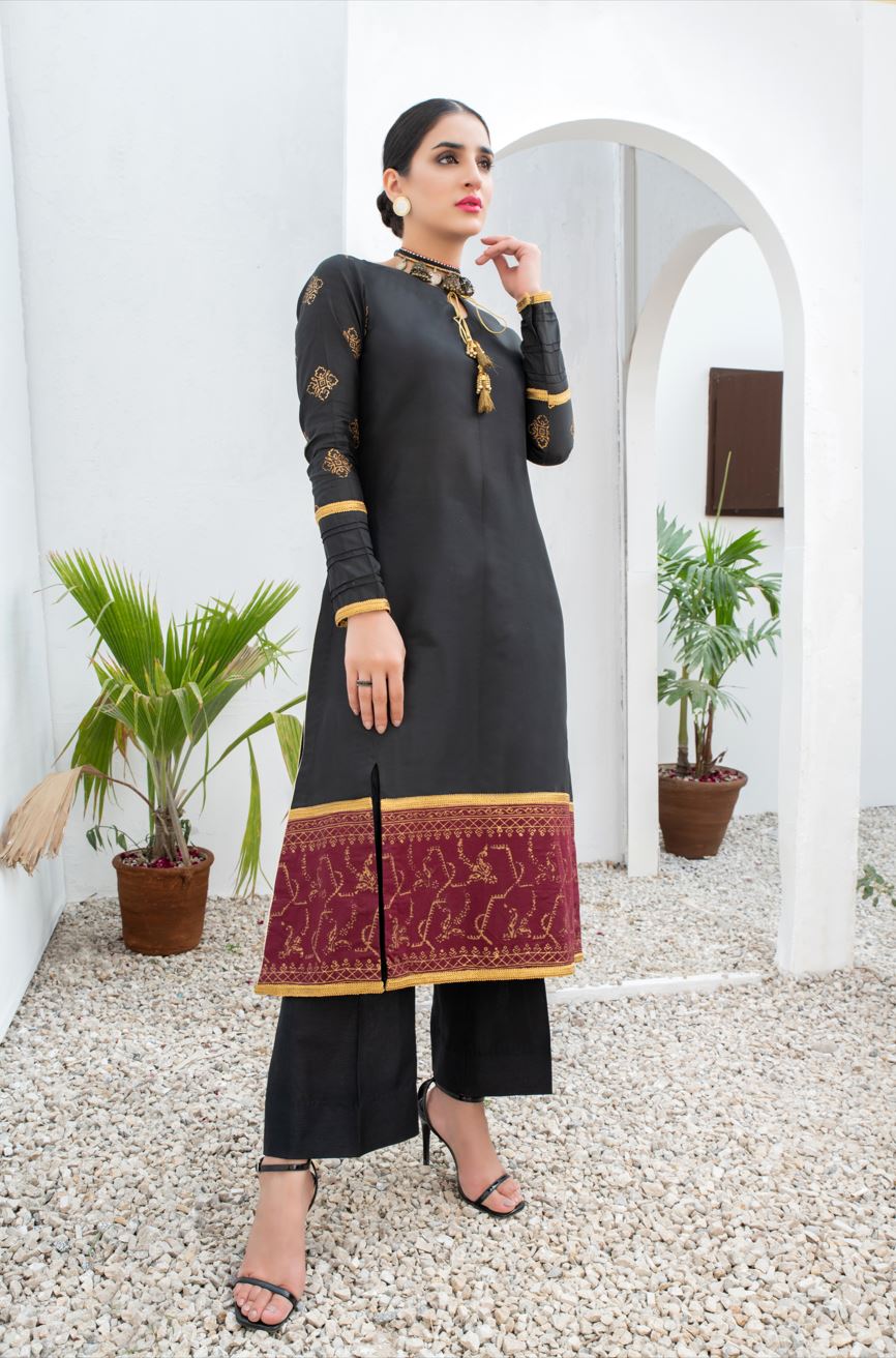 3.50 Yards Shirt with Block Print Sleeves Panel
