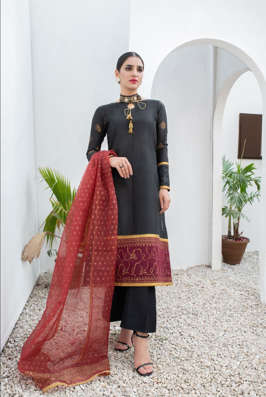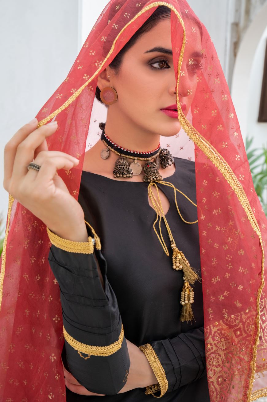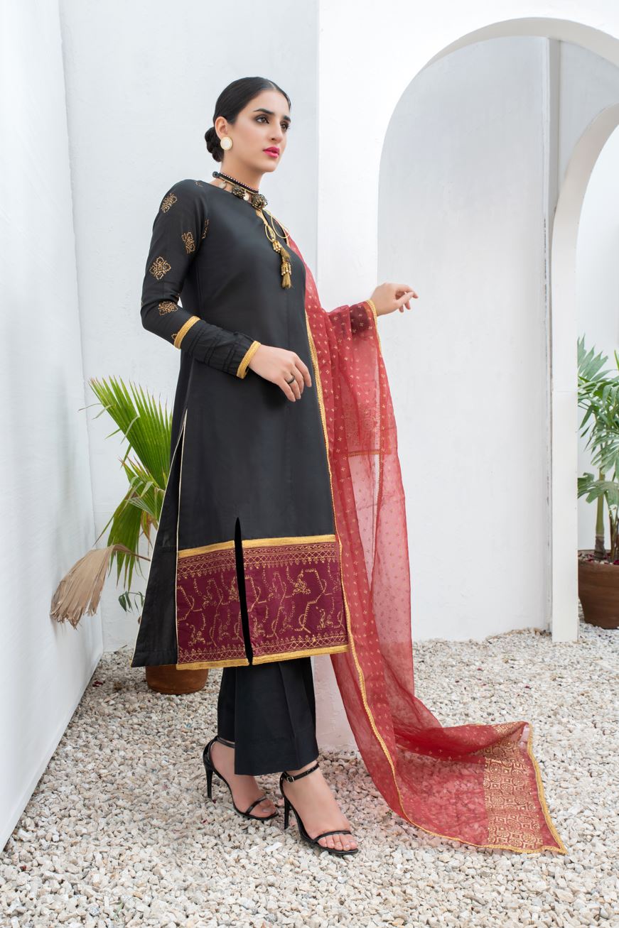 3.50 Yards Shirt with Block Print Sleeves Panel